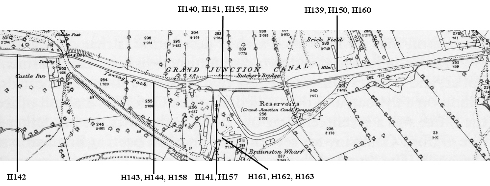 Opposite the towing path bridge over the arm that used to lead to the Oxford Canal. Butcher's Bridge in the background