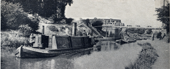 the former Gas Works basin (recently filled in) with coal barges in tow. This