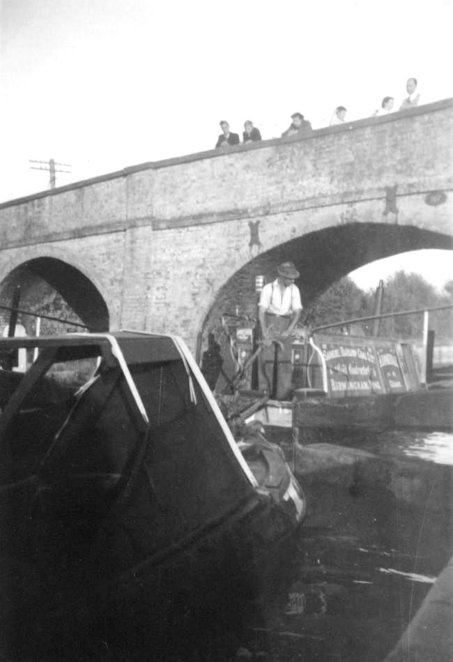 ADMIRAL, in Barlow livery, with Forget me Not, entering Soulbury Three Locks on August 21st, 1949