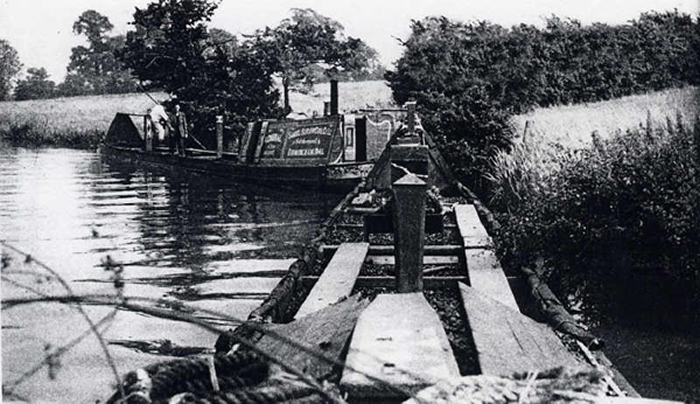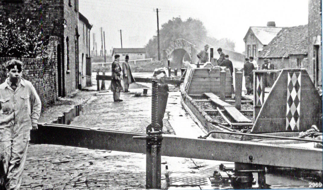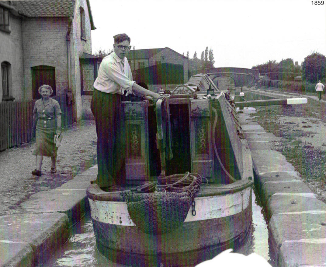 ADMIRAL at Hawkesbury Stop Lock in July 1955. Rodney Weaver in boiler suit.