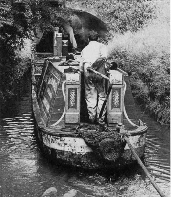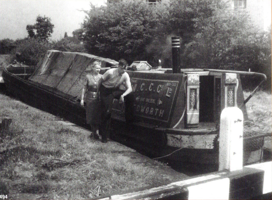 ADMIRAL with butty Mosquito, stemmed up on the Coventry Canal, July 1955