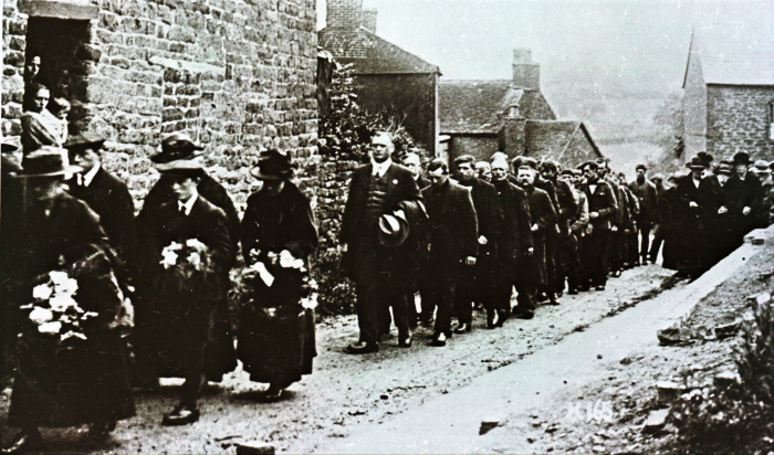 The funeral procession in Cross Lane, Braunston, of Joseph Green of FMC's Flint on 27th September 1923