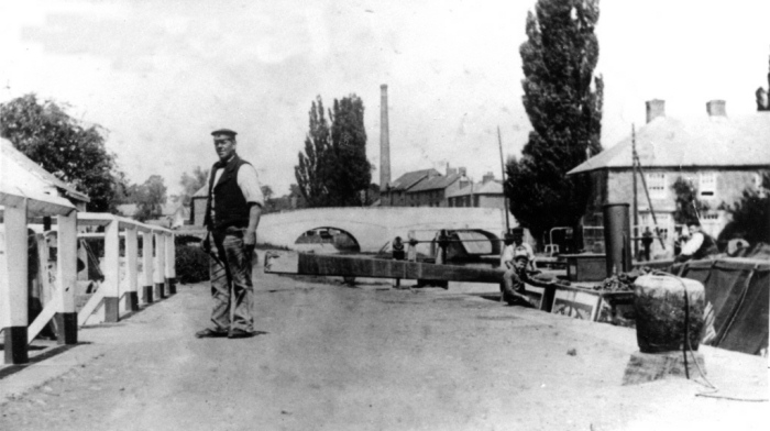 Duke at Lock 15 at Stoke Bruerne in 1896. Charlie Newton (aged 14) sitting on the lockside, is learning to be a driver