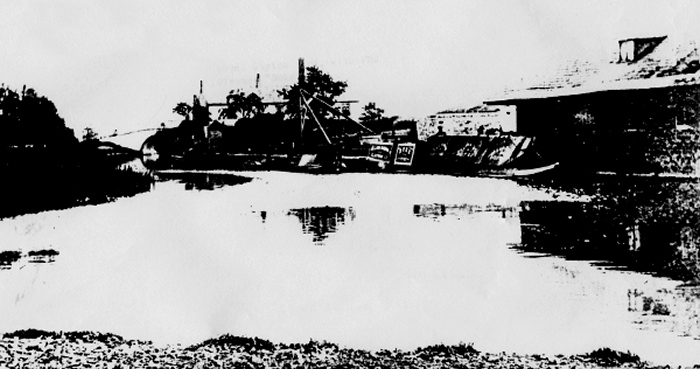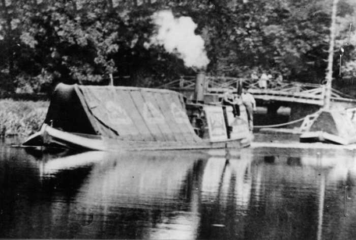 DUKE in Cassiobury Park, 1896. Charlie Newton is sitting on the cabin top.