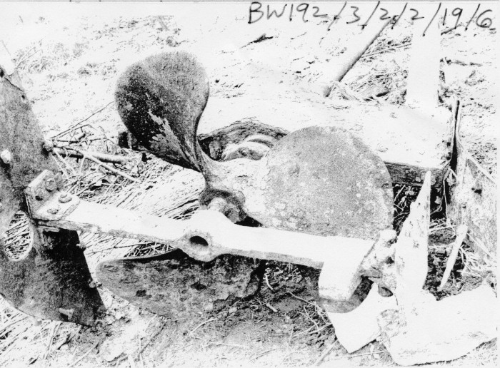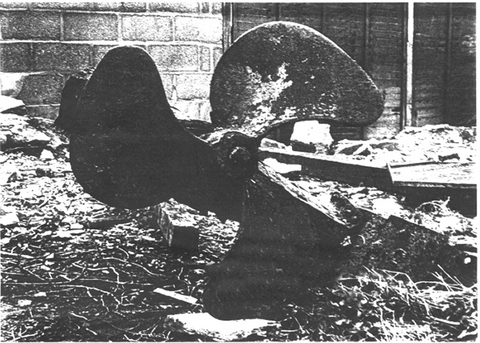 EARL's propeller, skeg and skeg iron showing the propeller shaft socket and part of the uxter plate