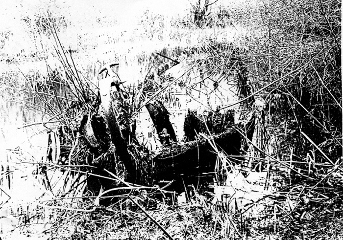 Wreck of EARL in the arm of the Oxford Canal, near Brinklow, 1962
